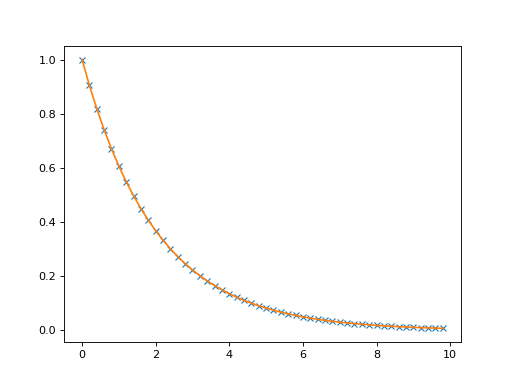 >>> def rhs(x): ... return [-.5 * x[0]]